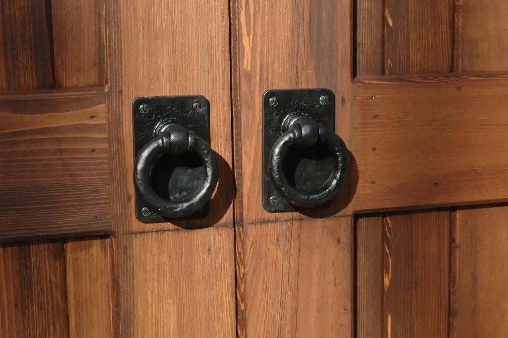 Handles like CarriageCraft Iron Decorative Pulls or Acorn Manufacturing’s Rustic Sets make wooden doors look timeless — even when paired with modern security locks like Garage Door Lock Sets or Speakeasy Grilles.